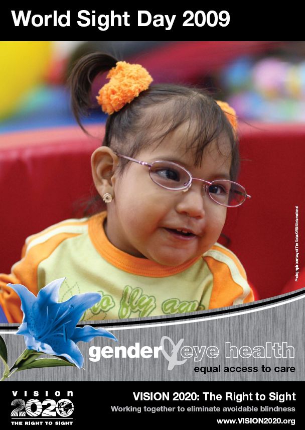I’m almost out of time, but I wanted to post something in recognition of World Sight Day, 2009 – an international day of awareness, held annually on the second Thursday of October to focus attention on the global issue of avoidable blindness and visual impairment. World Sight Day is part of the VISION 2020 Global Initiative for the elimination of avoidable blindness, launched in 1999, jointly by the World Health Organization (WHO) and the International Agency for the Prevention of Blindness (IAPB).