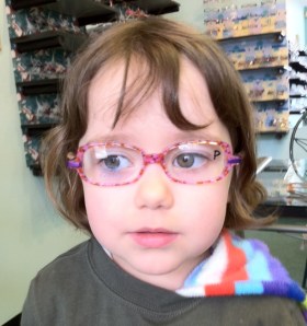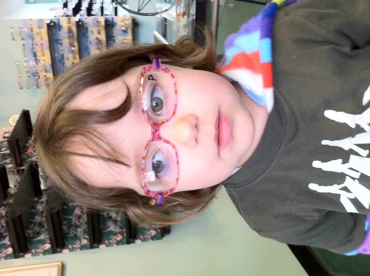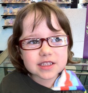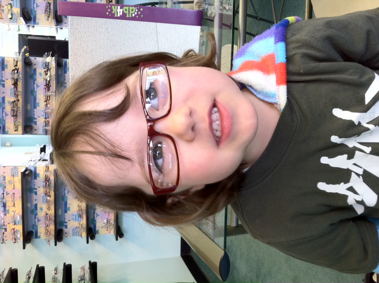 The new glasses should be here in a week or so. I think Zoe was disappointed she couldn’t take them home that day. She’s planning to bring in the pictures of her in her new glasses to school tomorrow for show and tell.