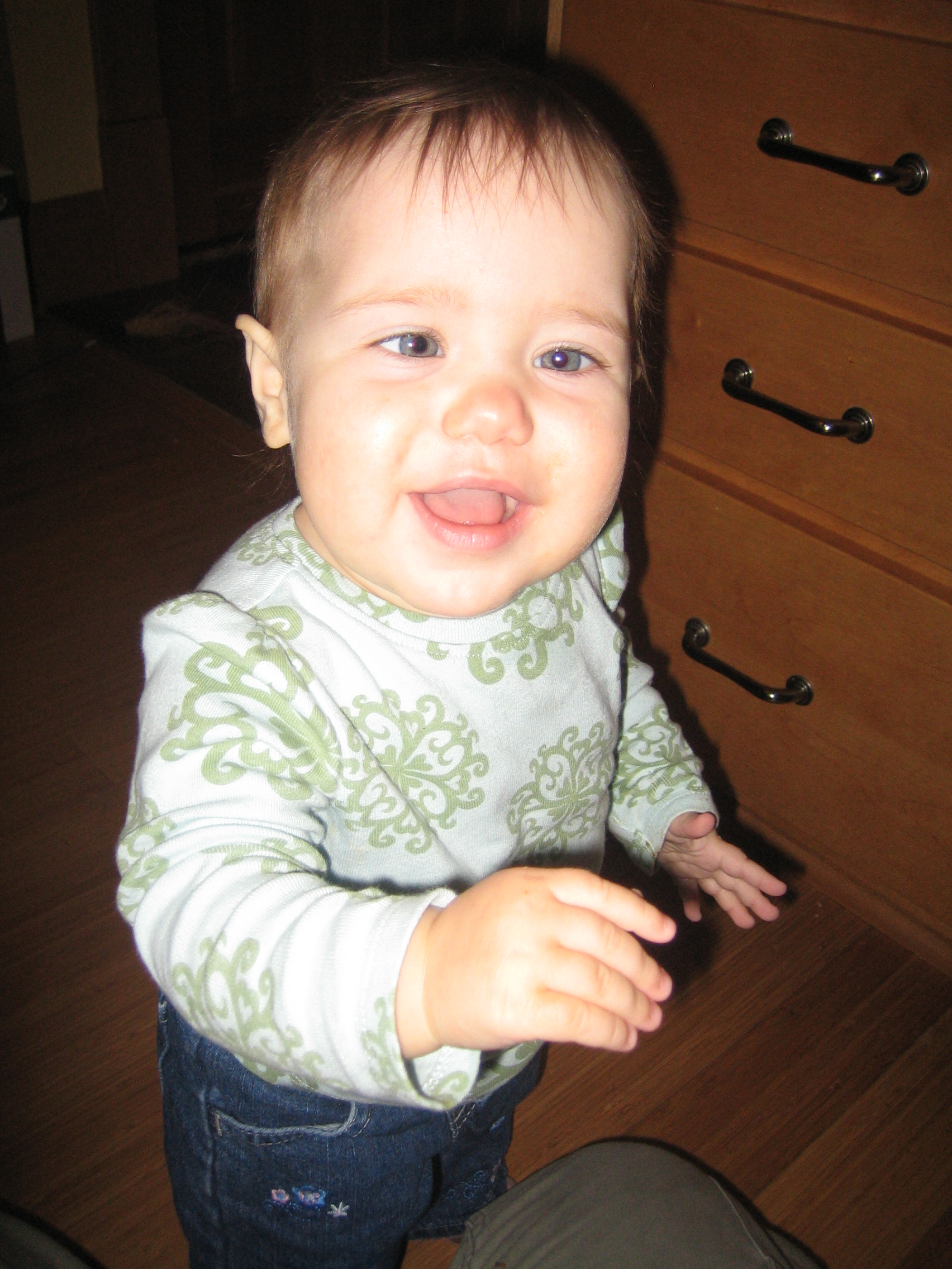 (For us, Zoe’s eyes were turning in quite noticeably and significantly starting around 8 months old. Even with them turning so much, I almost ignored it and let it go. When I did bring it up to her pediatrician, I fully expected her doctor to tell me it was nothing. Zoe’s doctor didn’t see her eyes turning at that appointment, but thank goodness she still trusted me and what I was describing, and referred us to an eye doctor.)