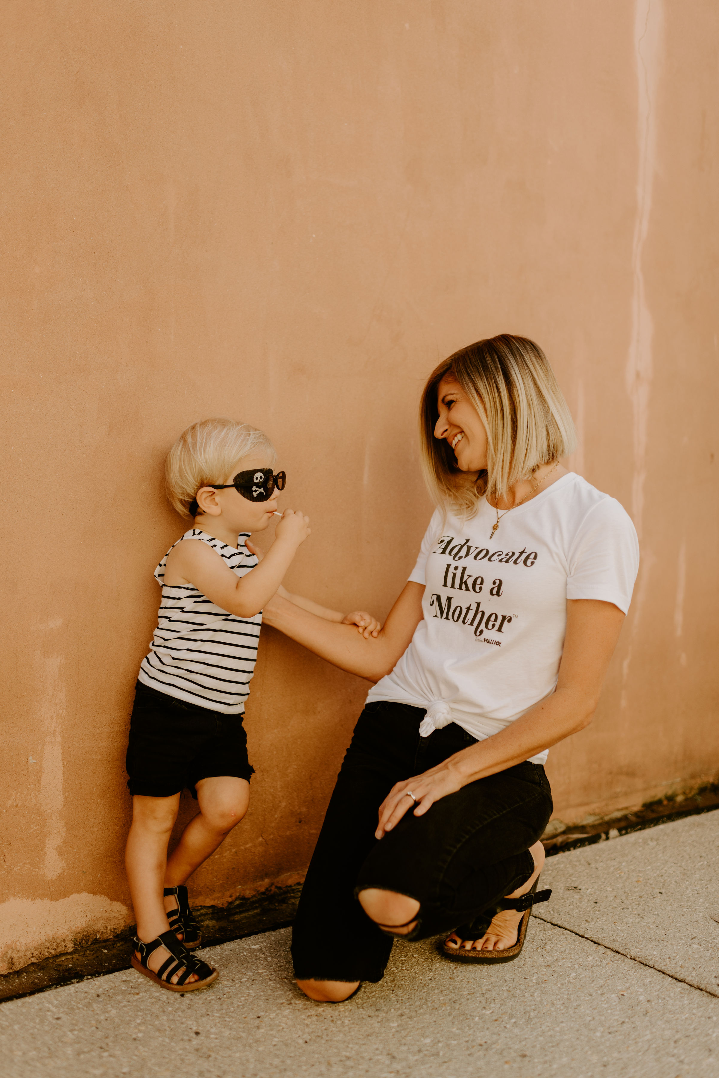 Photo of Gus and mama, Carrie Groleau in Advocate Like a Mother shirt