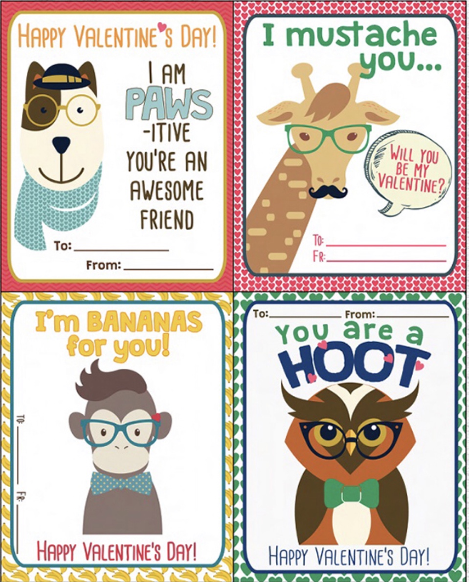 Your child can celebrate their vision and Valentines day with these “I love seeing you at school” cards from Makely (you can choose to pair them with plastic glasses, or use them as is).