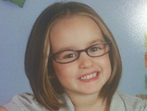 Shannon, 4 years old. She started wearing glasses at 4 years old for astigmatism and a thin optic nerve. Her glasses came from Children’s Hospital.