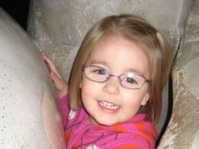 Abigail, 4 1/2 years old. She wears glasses for farsightedness. Her glasses are TurboFlex purchased from Costco.