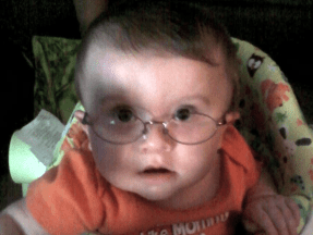Jed, 18 months. He has worn glasses since he was 3 months old for cataracts.