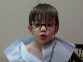 Brendan, 5 years old. He wears glasses for amblyopia – one eye is weaker than the other at about 20/60.