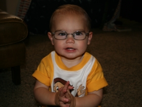 Kolten, 15 months. He wears glasses for farsightedness and astigmatism.