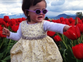 Chiara, 19 months. She wears glasses for farsightedness and loves them!