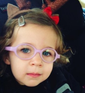 Carli, 2 years old. She wears glasses for farsightedness and accomodative esotropia.