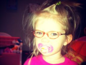 Kendall is 2 1/2. She wears glasses for Optic Nerve Hypoplasia. Her glasses are Dora from Walmart.